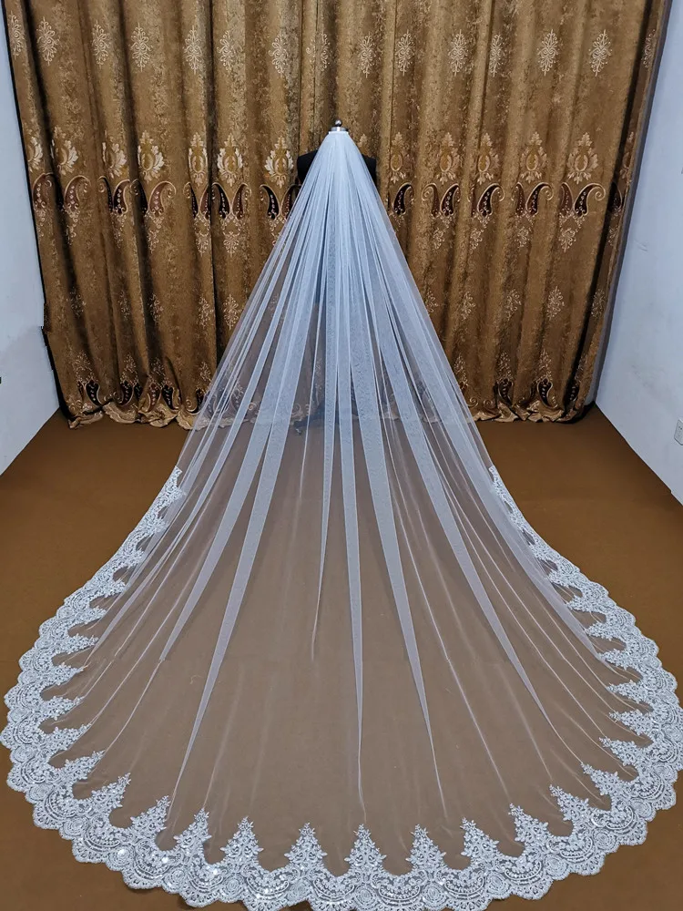 Costomer Scores and Reviews for 5 M White Ivory Cathedral Wedding Veils Long Lace Edge Bridal Veil with Comb Wedding Accessories Bride veil
