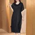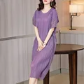 Dress Plus Size For Women 45-75kg Summer 2021 Round Neck Short Sleeve Stretch Miyake Pleated Loose A-Line Dresses Mid Calf