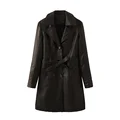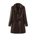 Costomer Scores and Reviews for Women's PU Leather Mid-Length Windbreaker Winter New Plus Velvet Warm Leather Coat 2021 Fashion Women's Long Windbreaker Jacket