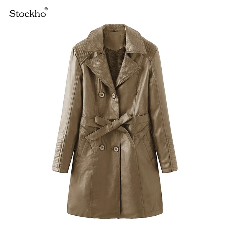 Best Women's PU Leather Mid-Length Windbreaker Winter New Plus Velvet Warm Leather Coat 2021 Fashion Women's Long Windbreaker Jacket and You will save 49% or US $38.6 today