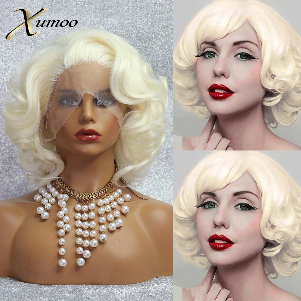 Best XUMOO High Temperature Fiber Synthetic Lace Front Wig Glueless Wavy Blonde Short Wig Daily Cosplay Synthetic Wigs For Women and You will save 35% or US $37.7 today