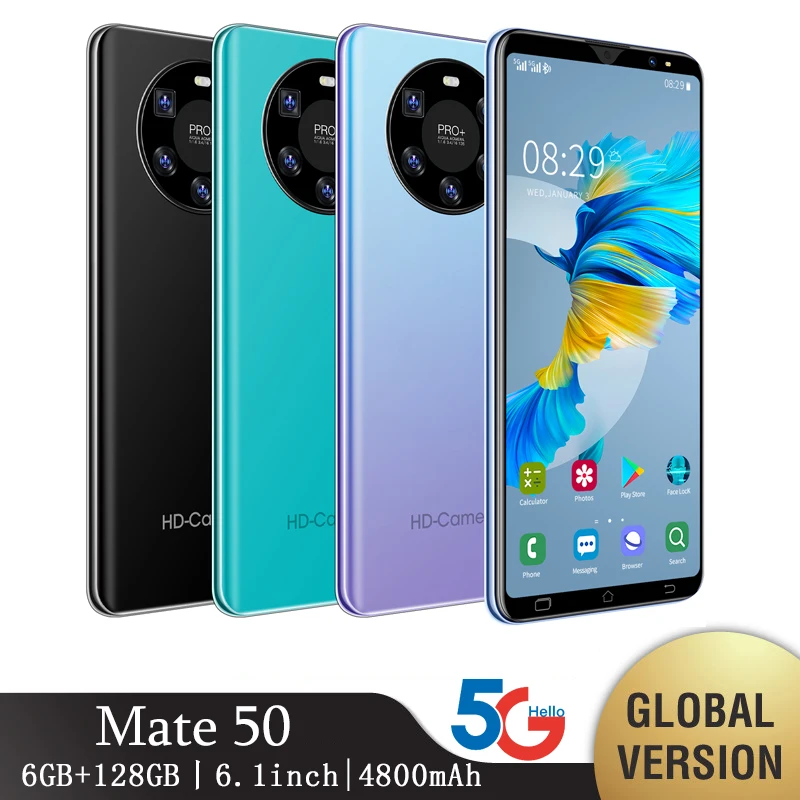 Mate 50 Pro Smartphone Global Version CellPhone Android 10.0 Mobile Phones 6.1 " Inch 6GB 128GB Dual SIM Face Unlock 4G/5G Phone